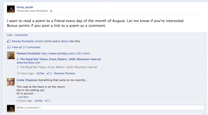 - I began by posting a message about this on Facebook & received wonderful comments back. (My next post will be the full list of poems).